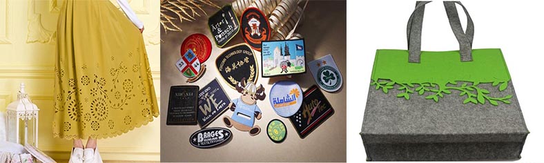 (1)普通面料的切割(無紡、滌綸、的確良、絲質、色丁、斜紋等)布料,激光雕刻機可雕刻切割任意形狀、任意圖案的面料,效率高、精度好,節約成本。