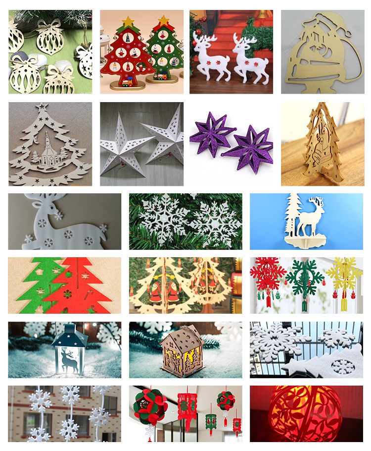木制圣誕樹、無紡布圣誕拉花、亞克力圣誕掛件、圣誕用品激光加工樣品圖