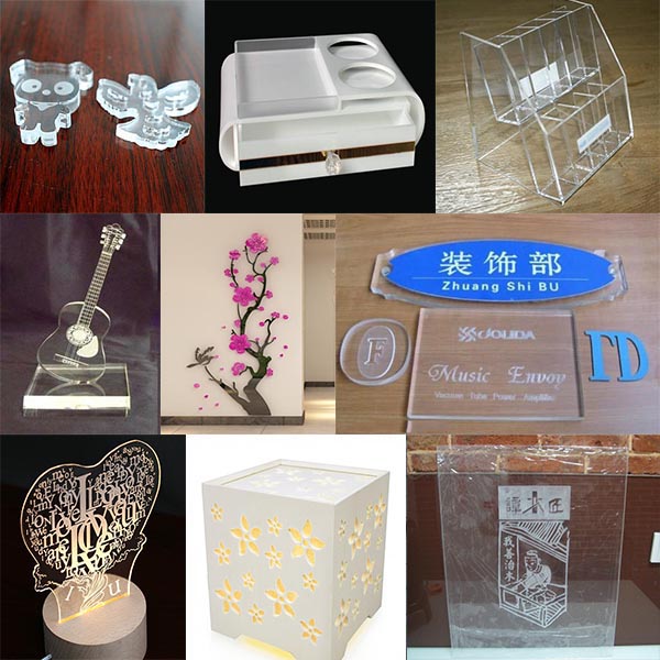 一般情況下有機玻璃采用背雕方式,也就是說從前面雕刻,后面觀看,這使得成品更具立體感。在背雕時需先將圖形加以鏡像,且雕刻速度要快,功率要低。如雕刻時功率過高,會使底面出現不平整的條紋,如希望雕得深一些可試著多雕幾次。有機玻璃是比較容易切割的,如客戶要求不高,切割完后就可交貨,而無需再火焰拋光。否則在切割時應使用吹氣裝置,以提高切口質量。在切割超過8mm的有機玻璃時,應更換大規格的鏡片。